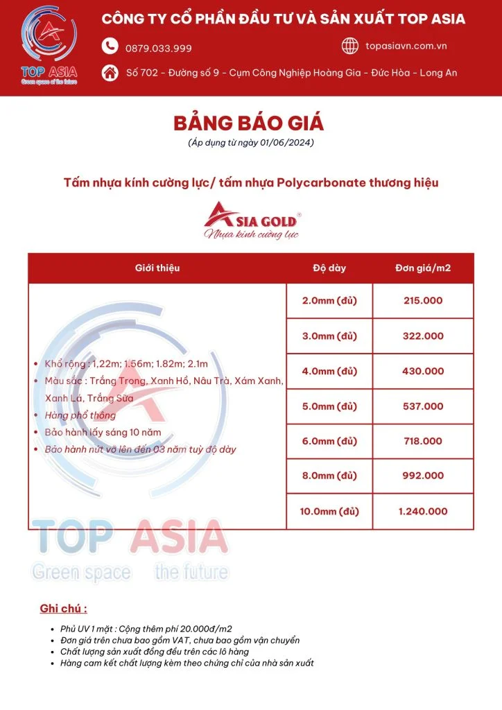 Nhựa kính cường lực Asia Gold