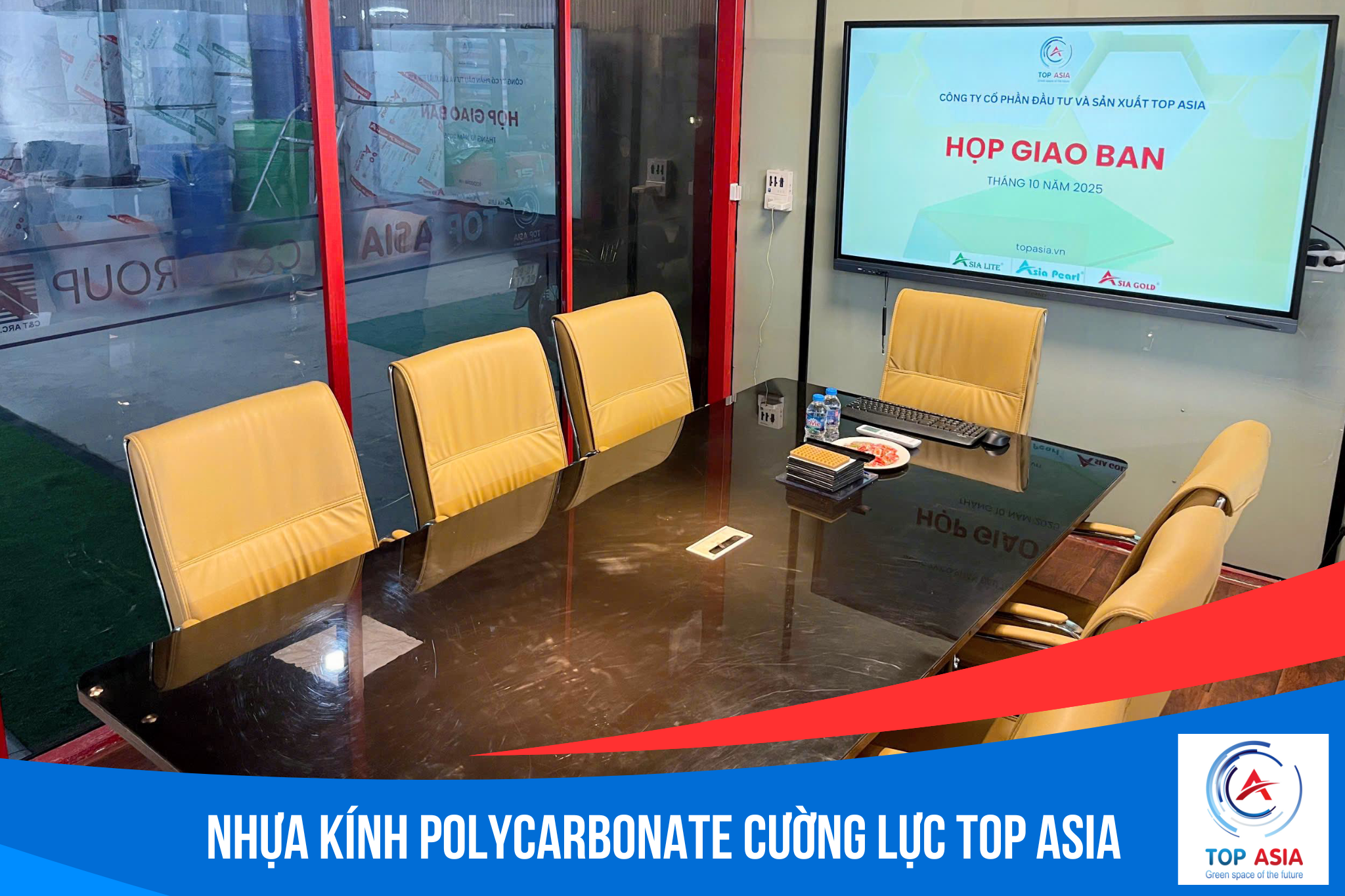 Việc sử dụng tấm nhựa kính cường lực PC (ví dụ như sản phẩm ASIA GOLD hoặc ASIA PEARL) làm vách ngăn và cửa đi cho phòng họp mang lại hàng loạt ưu điểm vượt trội, đảm bảo không gian văn phòng bền, đẹp và tiện nghi lâu dài: