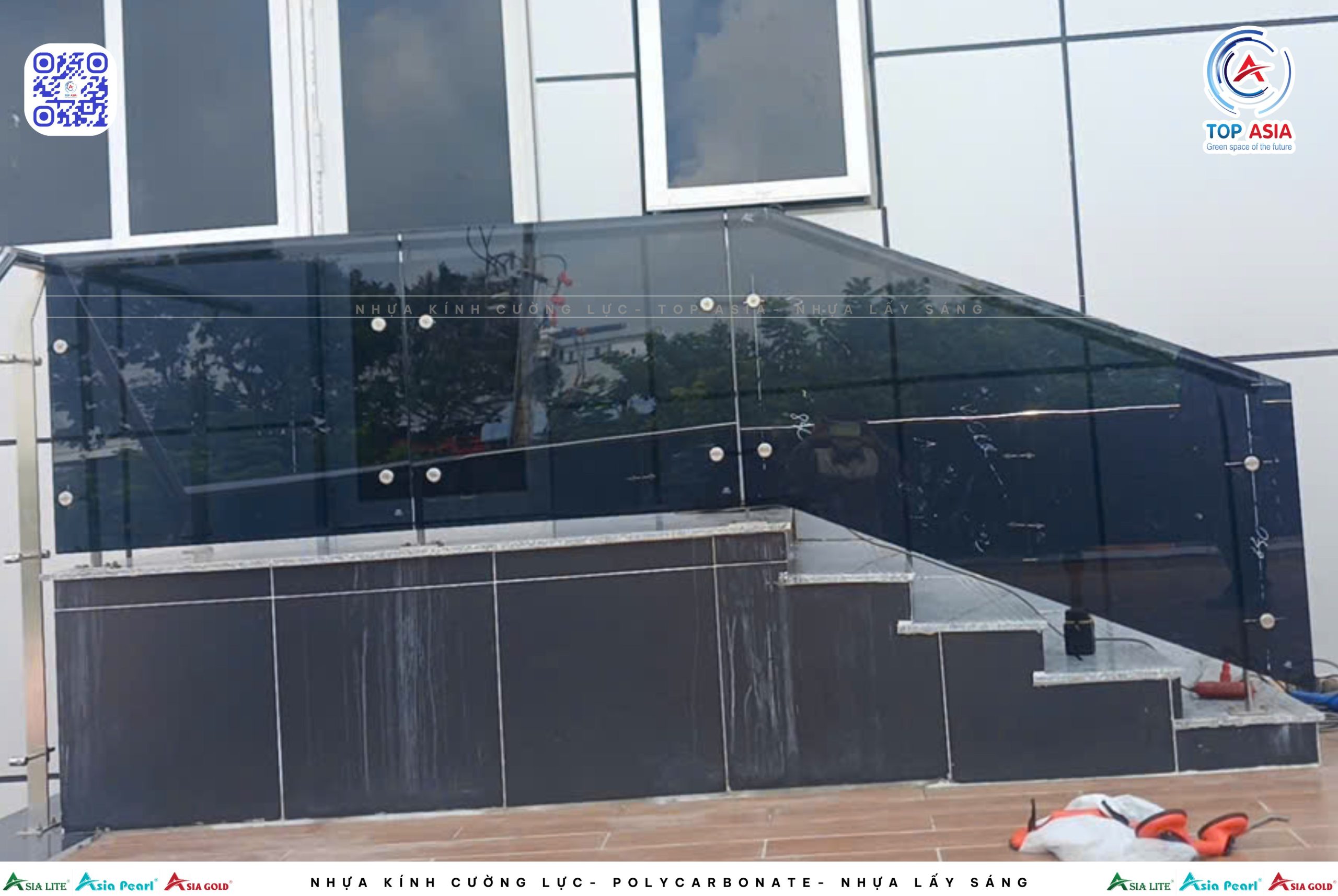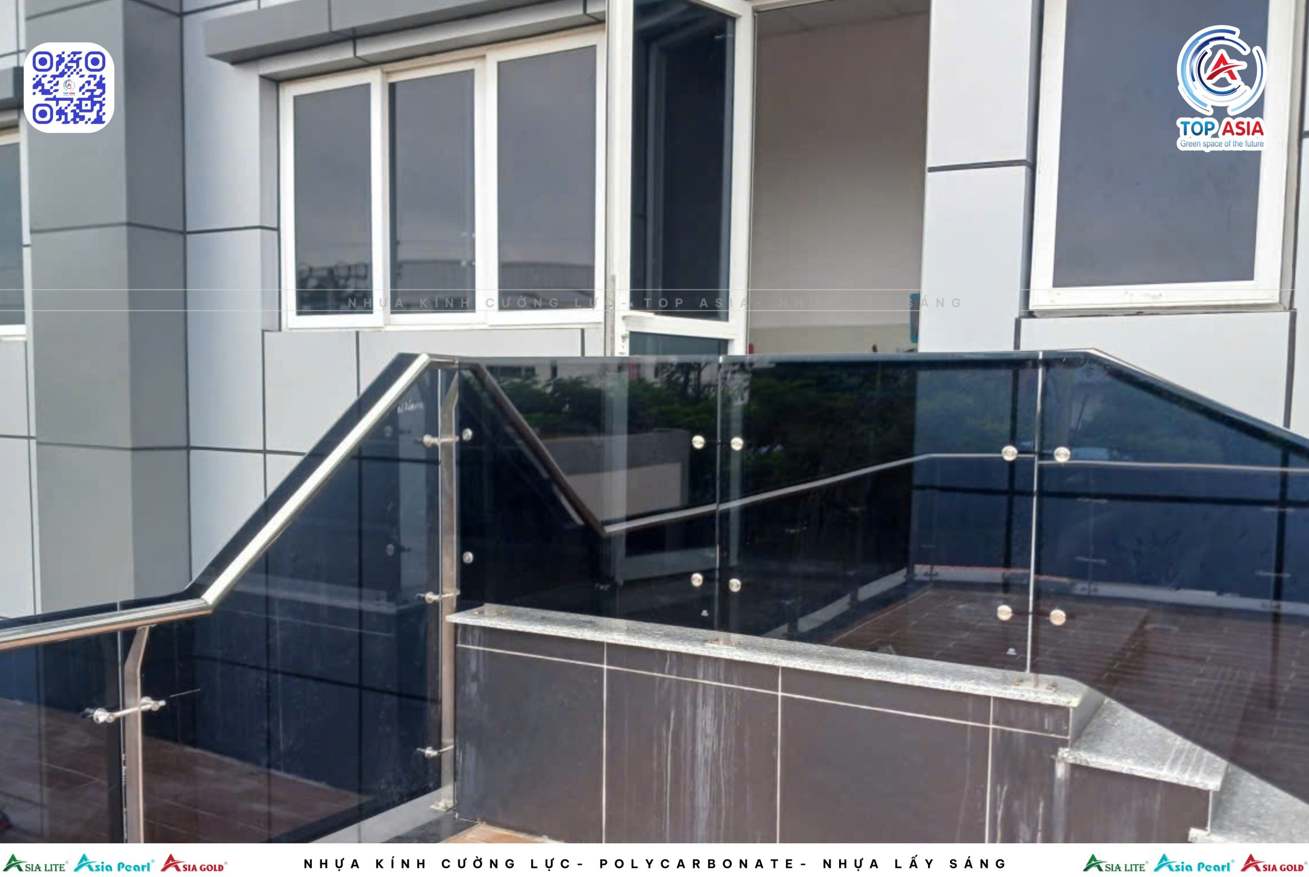 - Lan Can Ban Công & Tay Vịn Cầu Thang:Vật liệu này còn được mở rộng ứng dụng cho các hạng mục nội-ngoại thất nhờ tính linh hoạt và thẩm mỹ cao. Nhựa kính có thể uốn cong dễ dàng phù hợp với nhiều thiết kế, kết hợp với khả năng chống ăn mòn, không rỉ sét và được phủ lớp chống tia UV giúp duy trì độ bền và an toàn lâu dài trong mọi điều kiện môi trường.